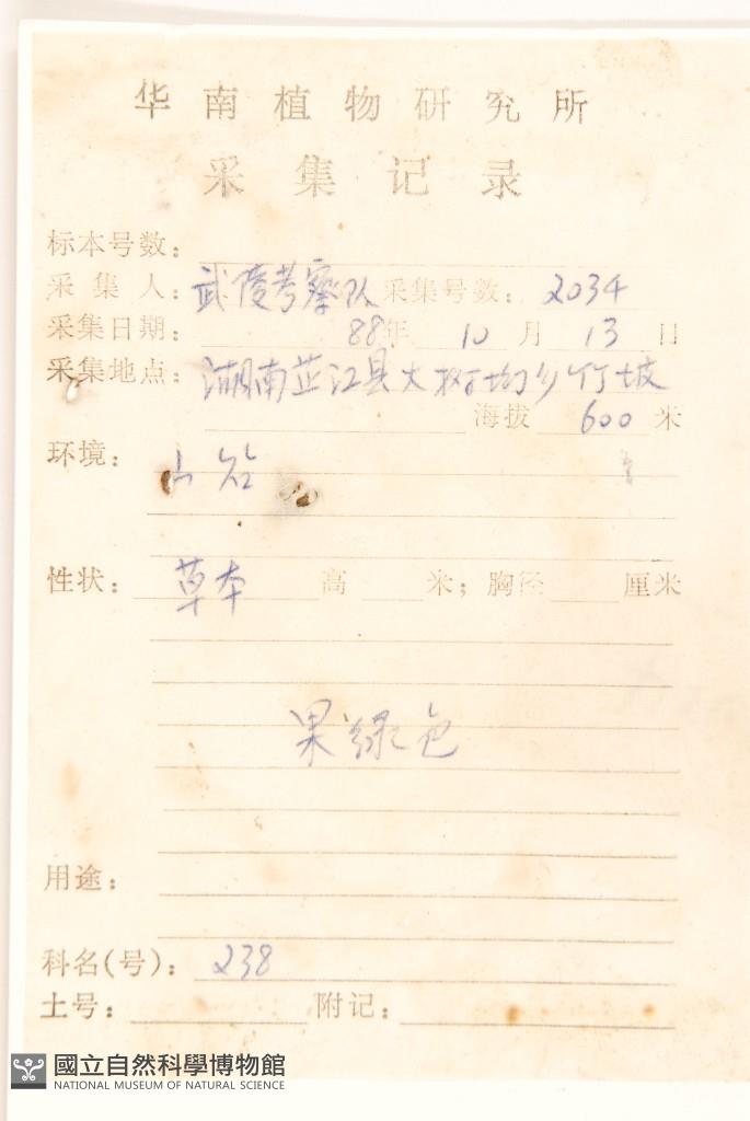 Collector's No.:武02034