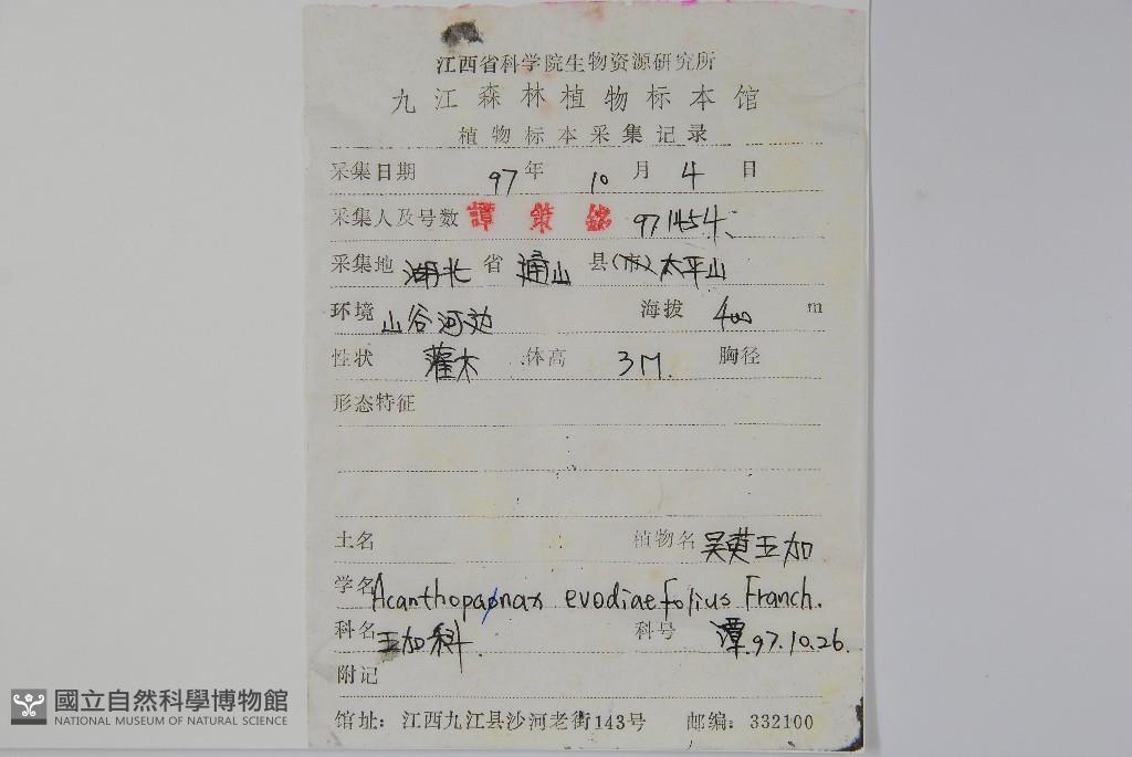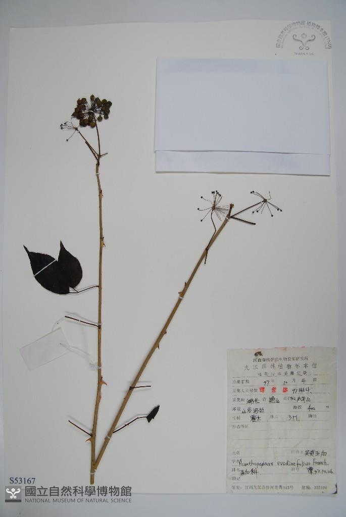 Scientific Name: Acanthopanax evodiaefolius Franch.