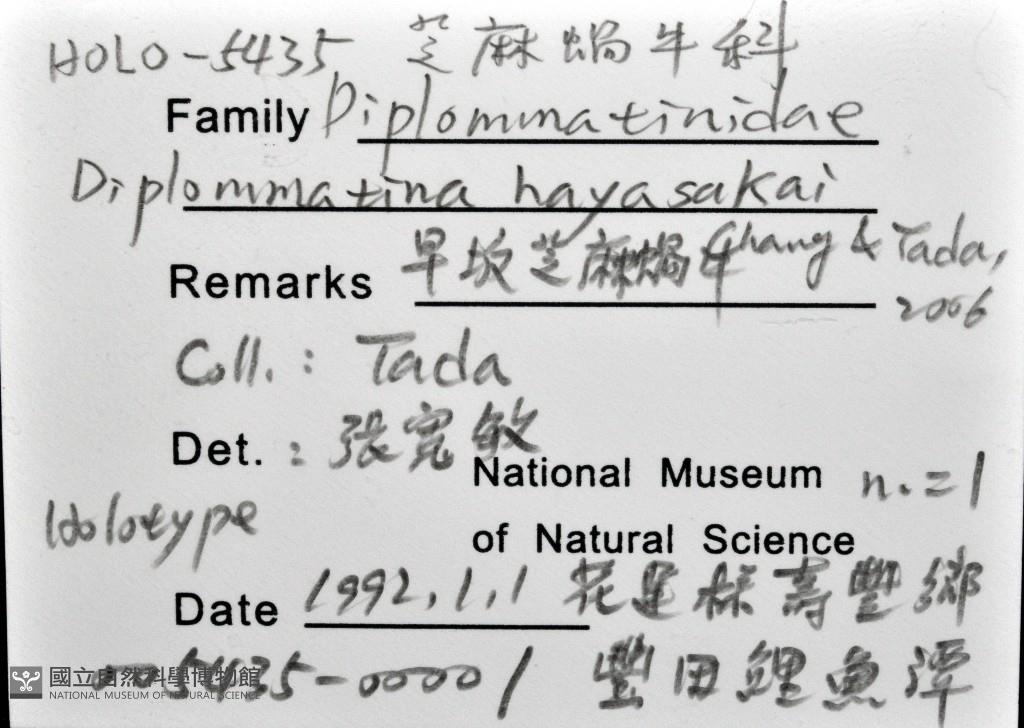 Scientific Name:Diplommatina hayasakai Chang & Tada