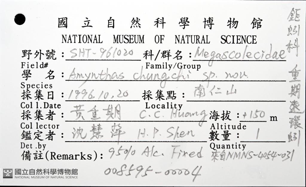Scientific Name:Amynthas chungchi sp. nov. Shen