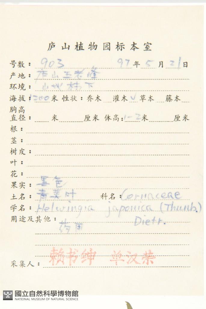 Collector:S. S. Lai & H. R. Shan