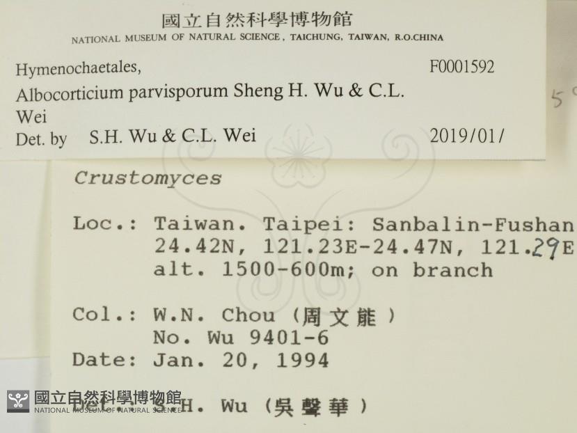 Schizocorticium parvisporum Sheng H. Wu & C.L. Wei
