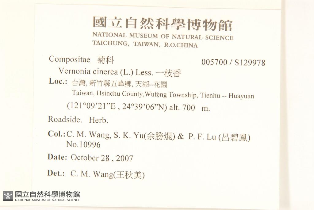 Collector:Chiu-Mei Wang (王秋美), Sheng-Kun Yu (余勝焜), & Pi-Fong Lu (呂碧鳳)
