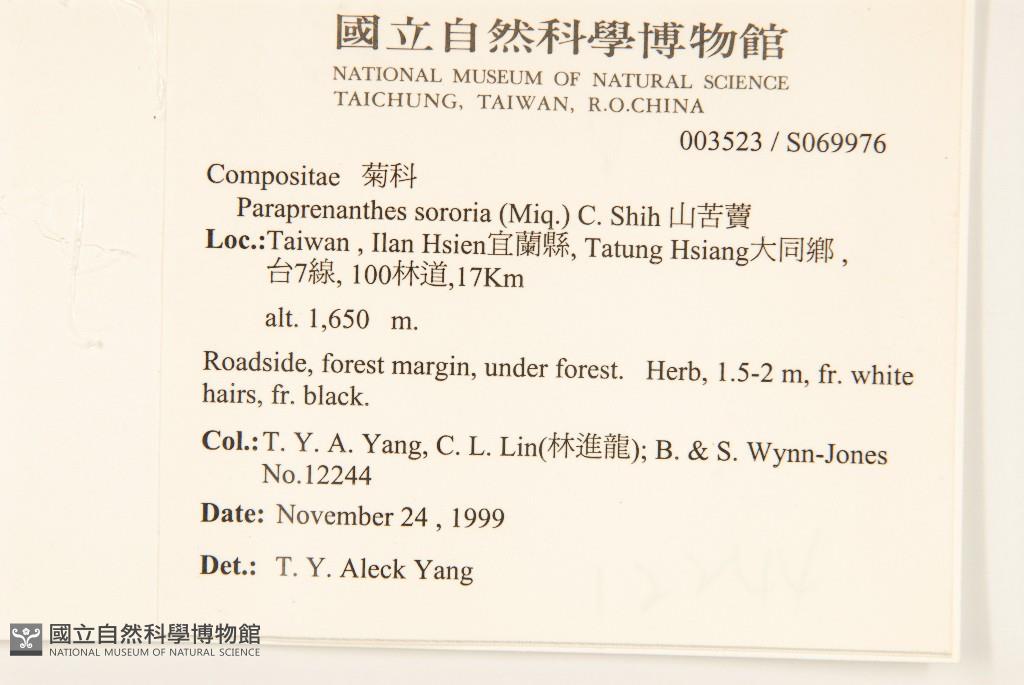 Collector:T. Y. A. Yang, C. L. Lin(林進龍), B. & S. Wynn-Jones
