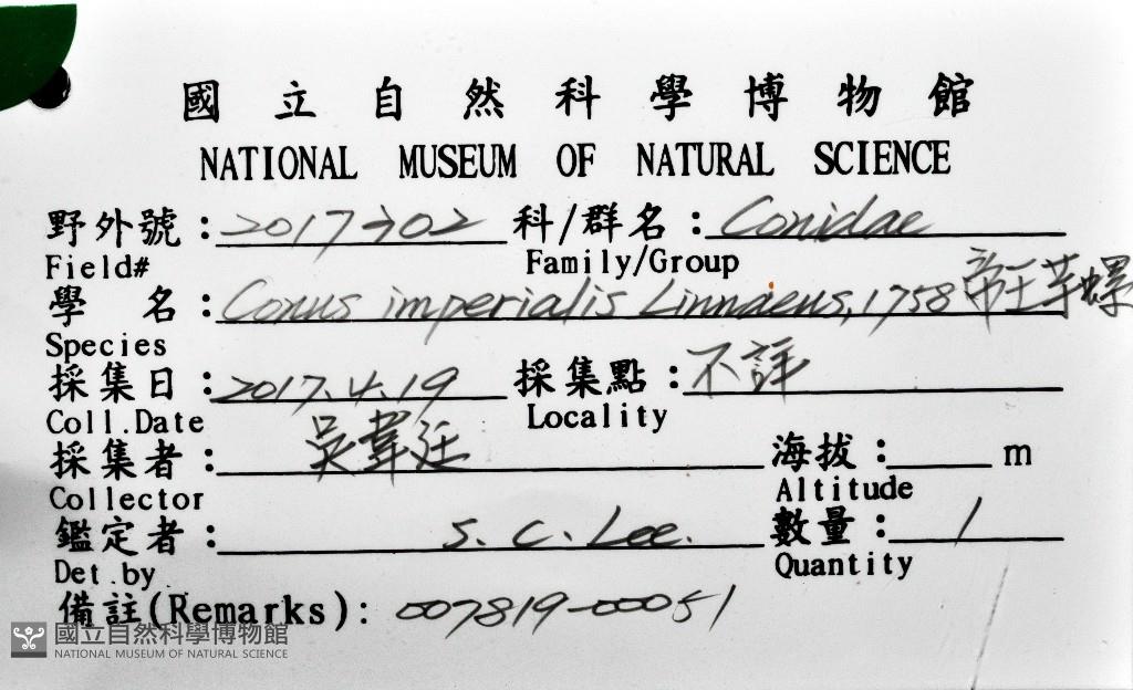 Scientific Name:Conus imperialis Linnaeus,1758