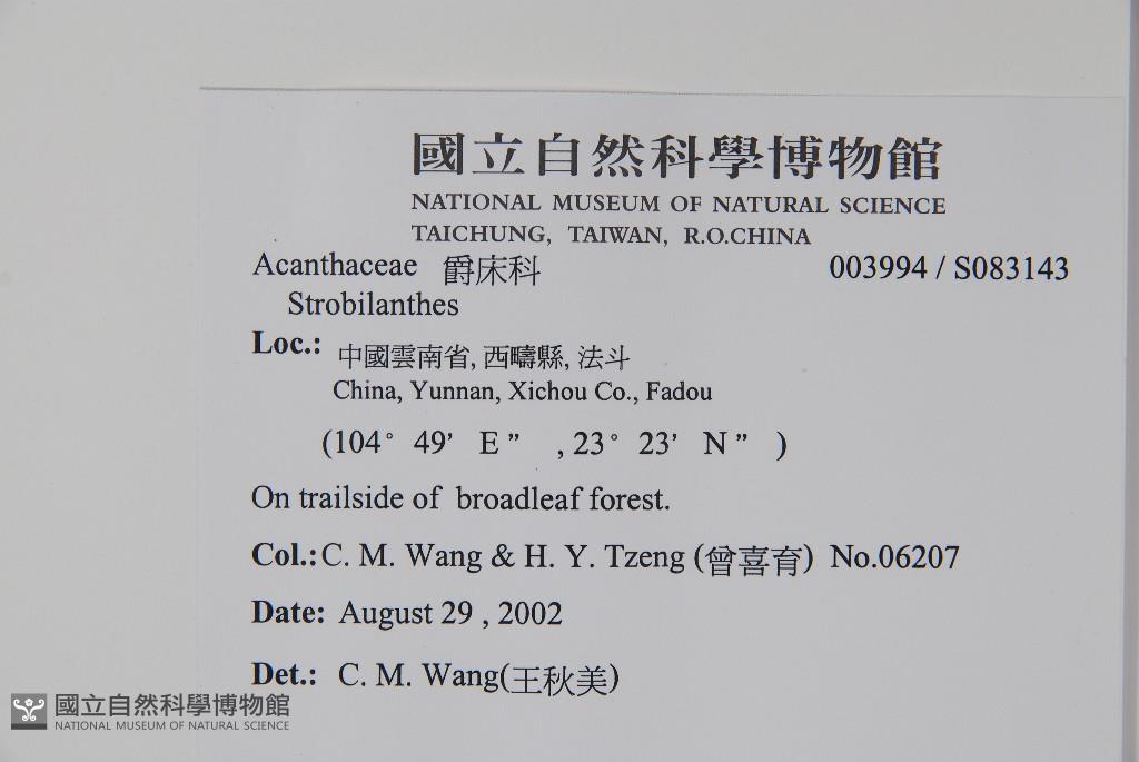Collector:Chiu-Mei Wang (王秋美), Hsy-Yu Tzeng (曾喜育), & Min Deng (鄧敏)