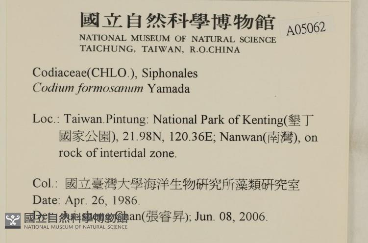Collector:國立臺灣大學海洋生物研究所藻類研究室