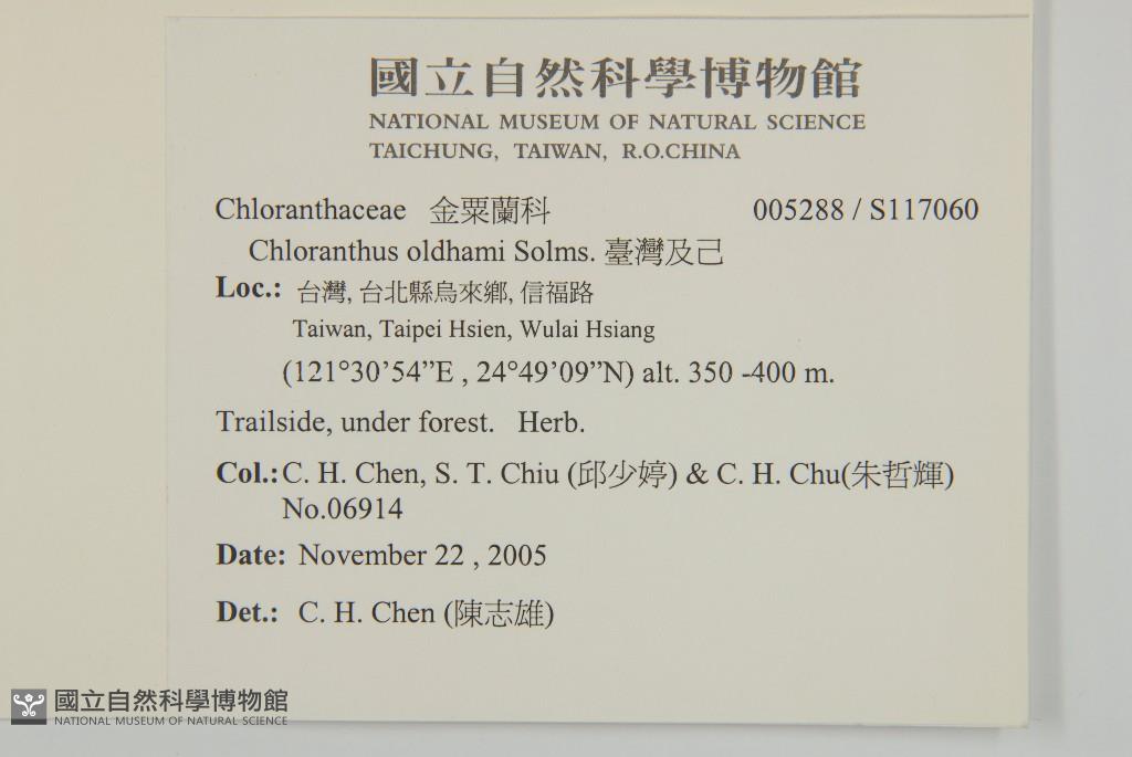 Scientific Name: Chloranthus oldhamii Solms.