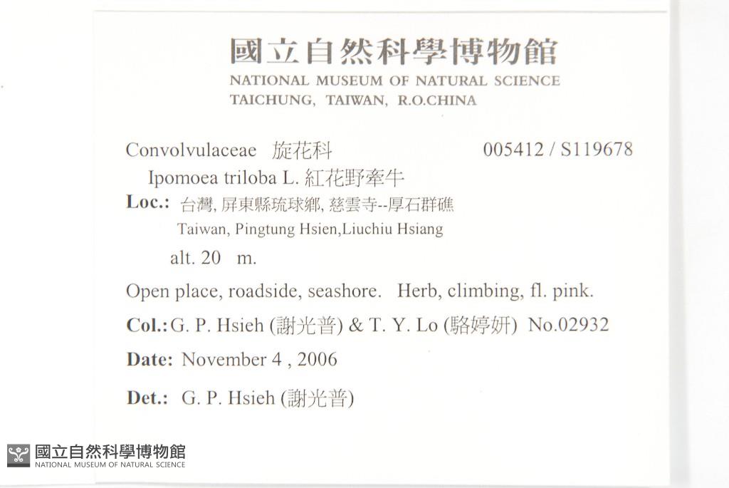 Collector:Guang-Pu Hsieh (謝光普) & Ting-Yen Lo (駱婷妍)