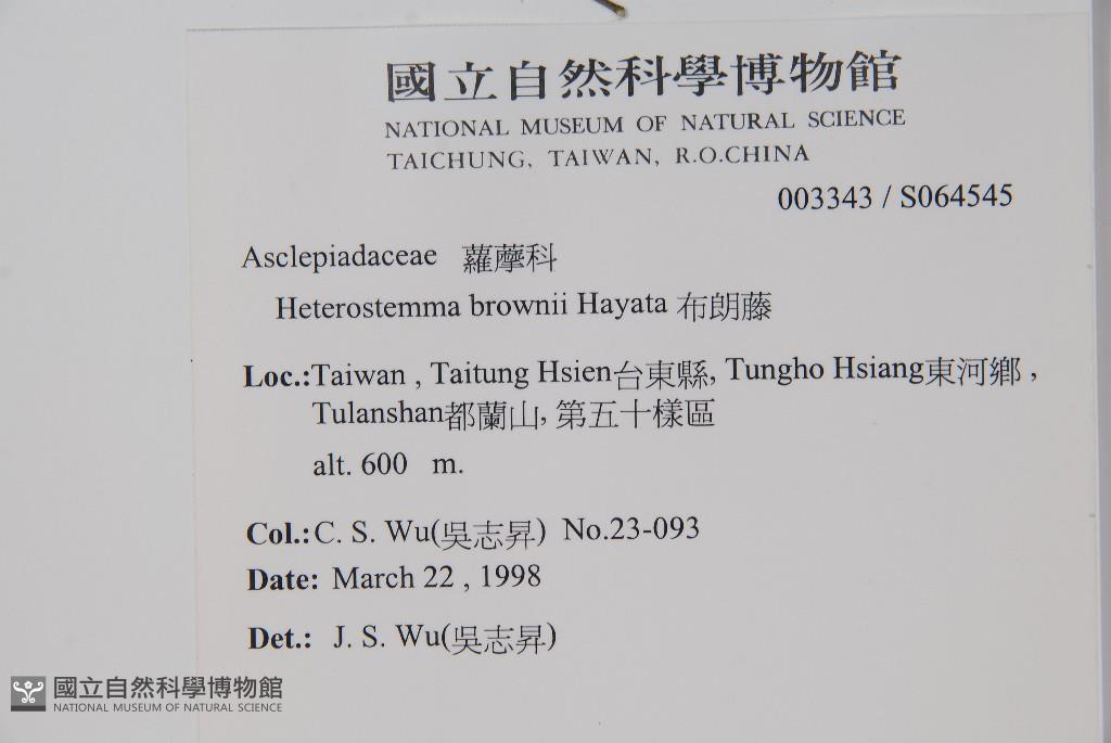 Scientific Name: Heterostemma brownii Hayata