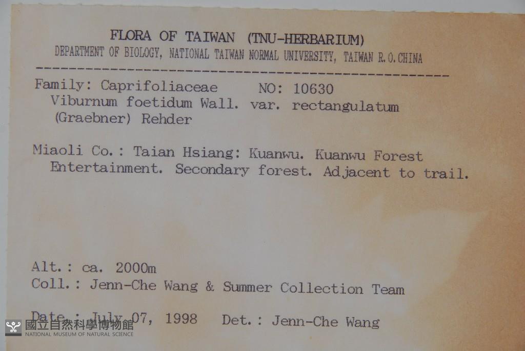 Collector:Jenn-Che Wang (王震哲), & Summer Collection Team (暑期採集隊)