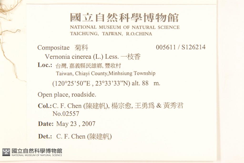 Scientific Name: Vernonia cinerea (L.) Less.