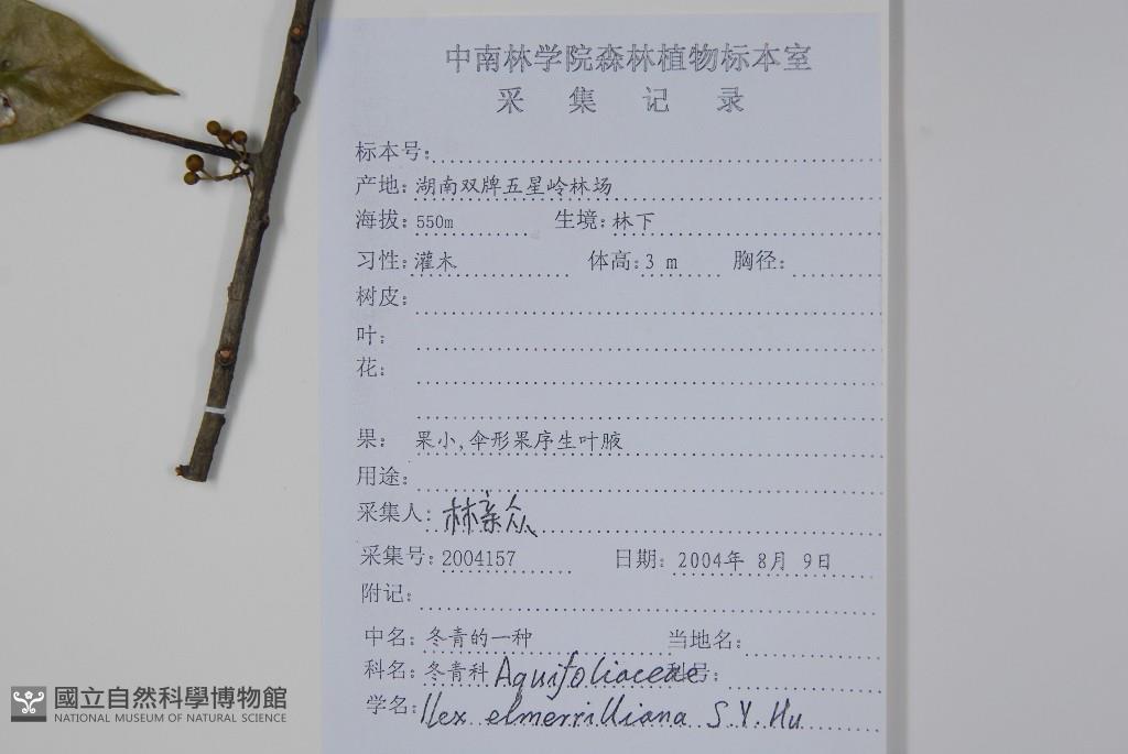Scientific Name: Ilex elmerrilliana S. Y. Hu