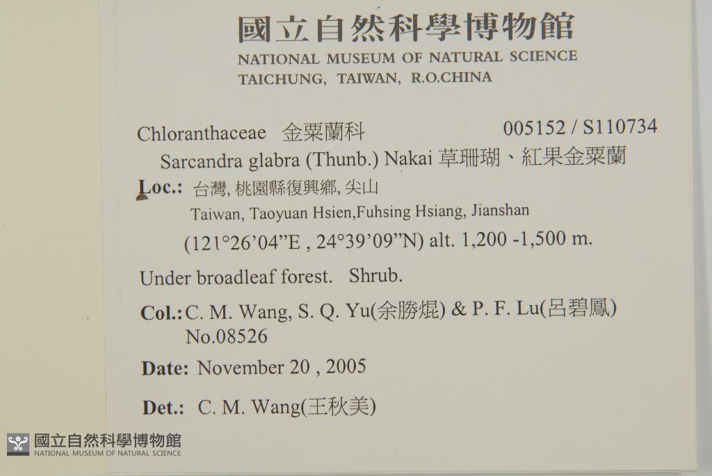 Collector:C. M. Wang, S. Q. Yu(余勝焜) & P. F. Lu(呂碧鳳)