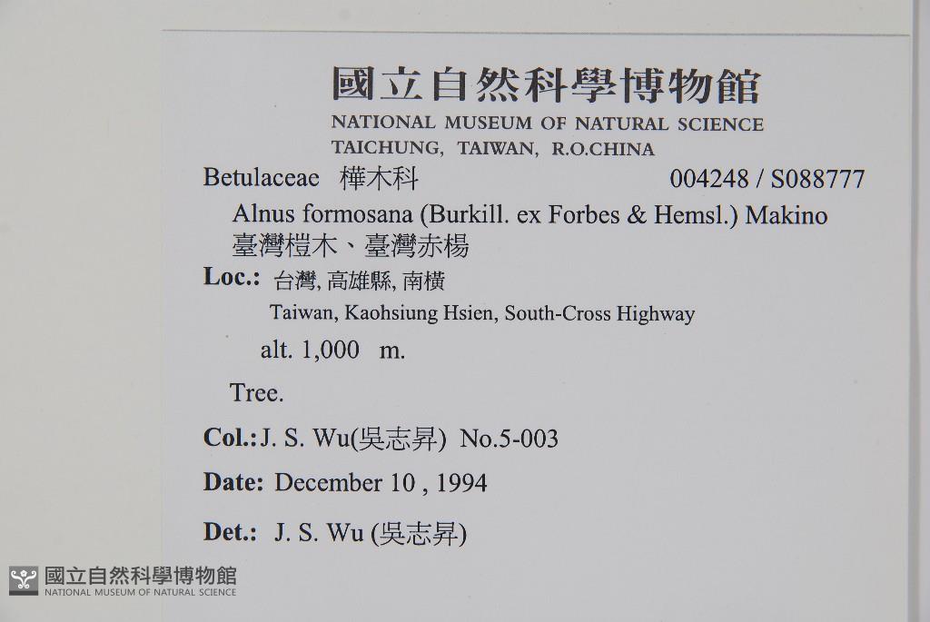 Scientific Name: Alnus formosana (Burkill ex Forbes & Hemsl.) Makino