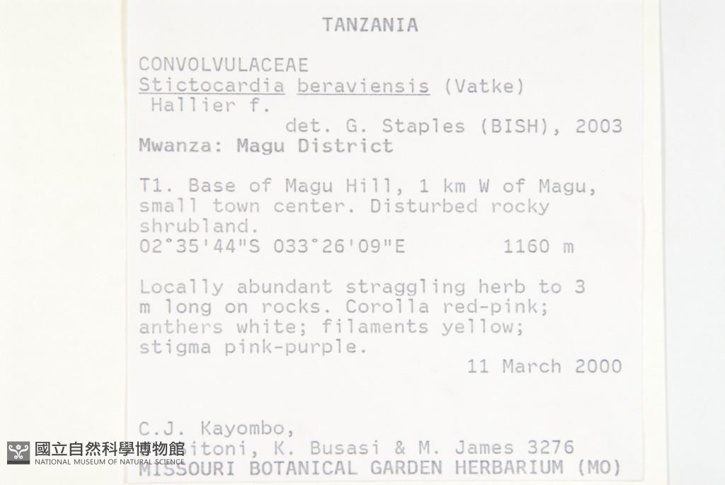 Collector:C. J. Kayombo, D. Sitoni, K. Busasi & M. James