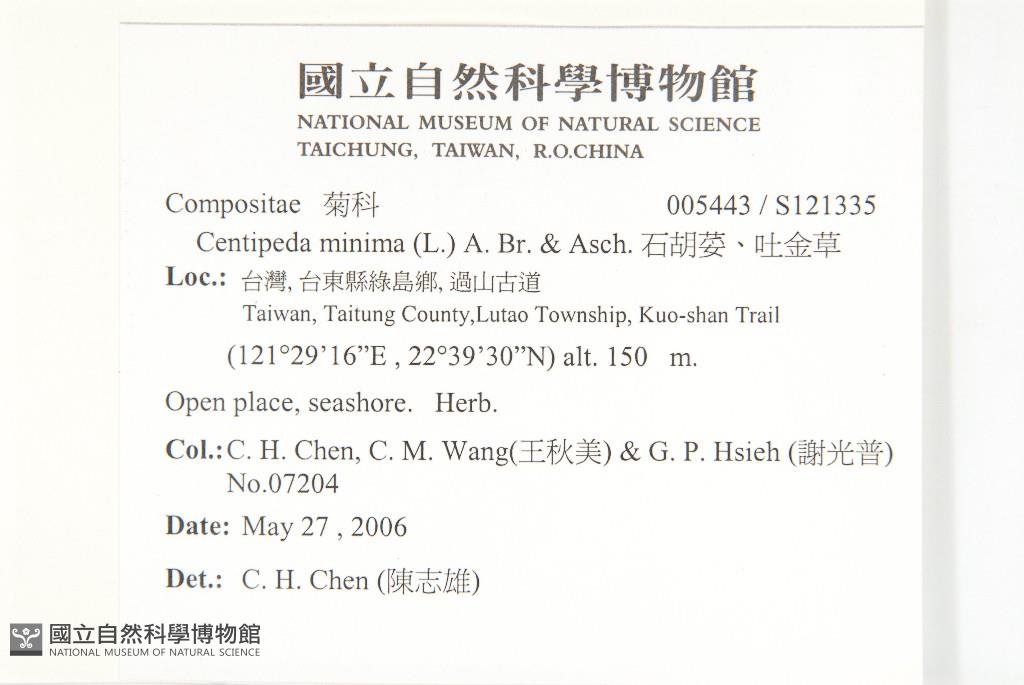 Collector:Chih-Hsiung Chen (陳志雄), Chiu-Mei Wang (王秋美), &Guang-Pu Hsieh (謝光普)