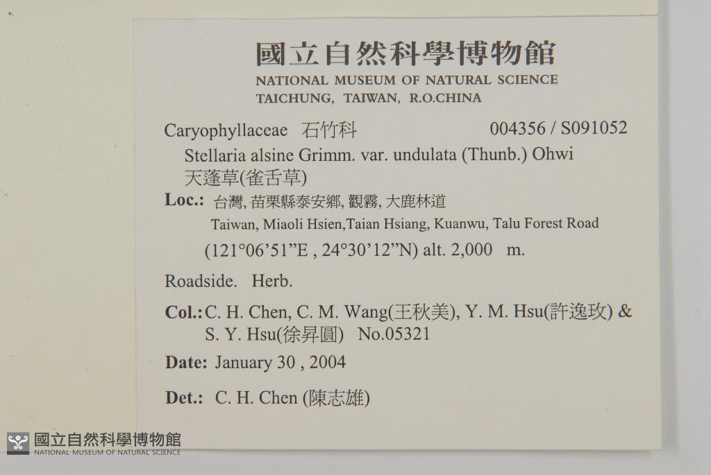 Collector:Chih-Hsiung Chen (陳志雄), Chiu-Mei Wang (王秋美), Yi-Mei Hsu (許逸玫), & al.