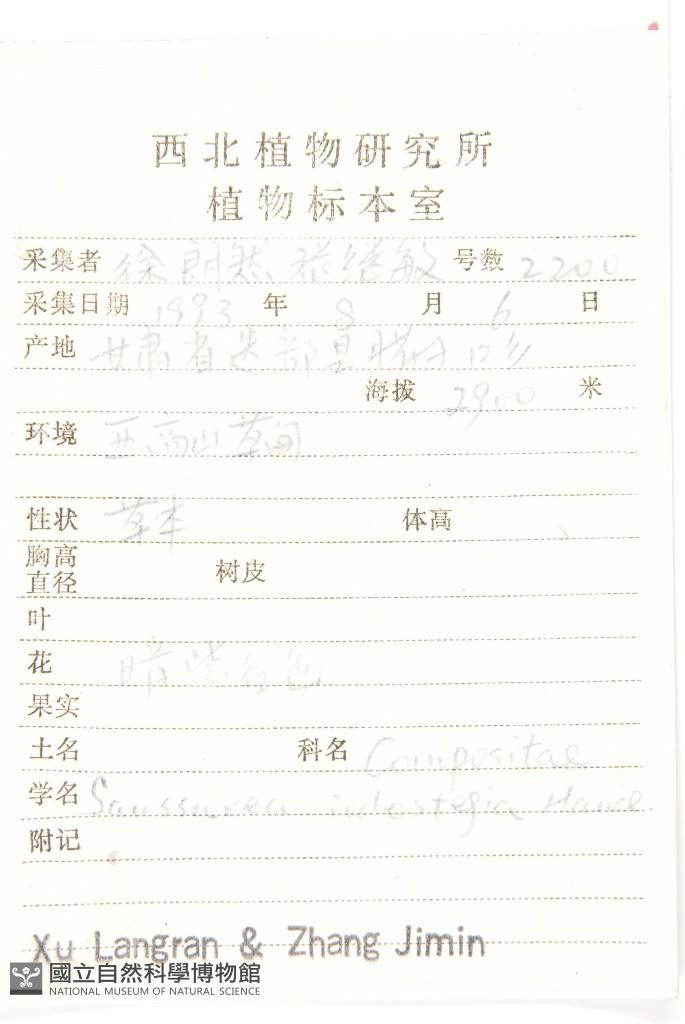 Scientific Name: Saussurea iodostegia Hance