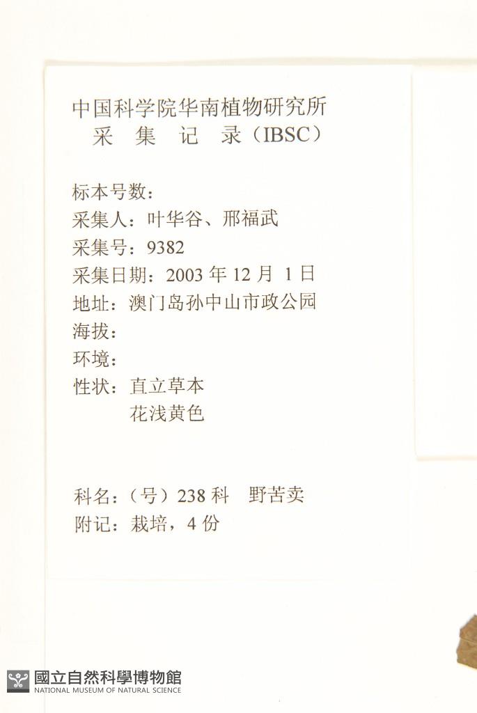 Collector:葉華谷、邢福武