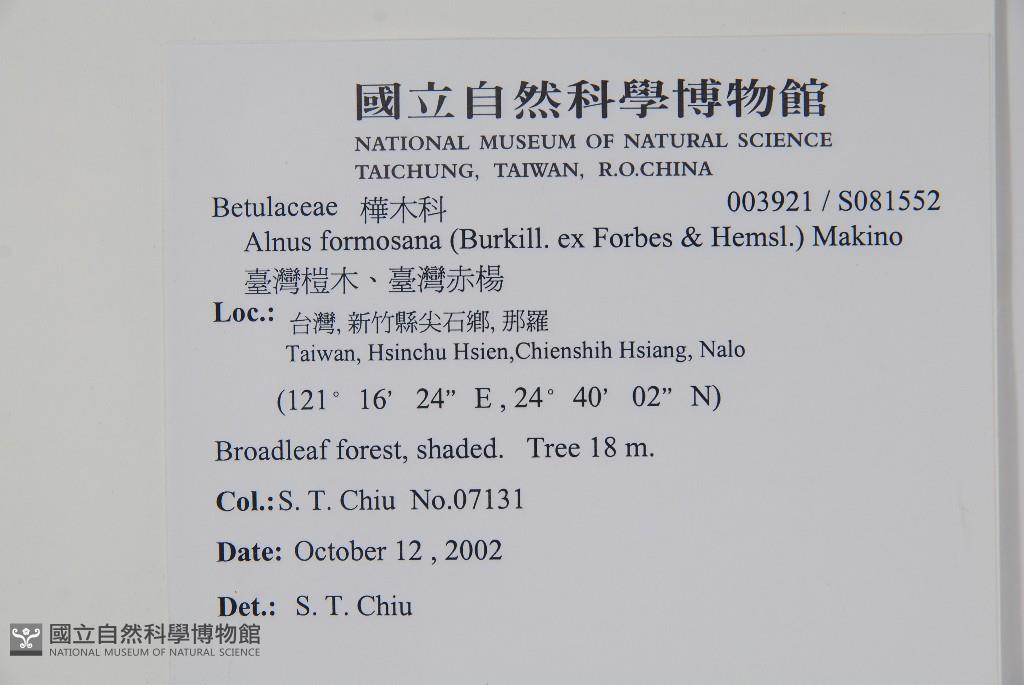 Scientific Name: Alnus formosana (Burkill ex Forbes & Hemsl.) Makino