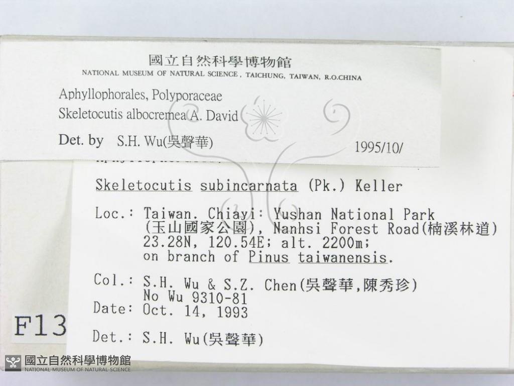 Skeletocutis albocremea A. David