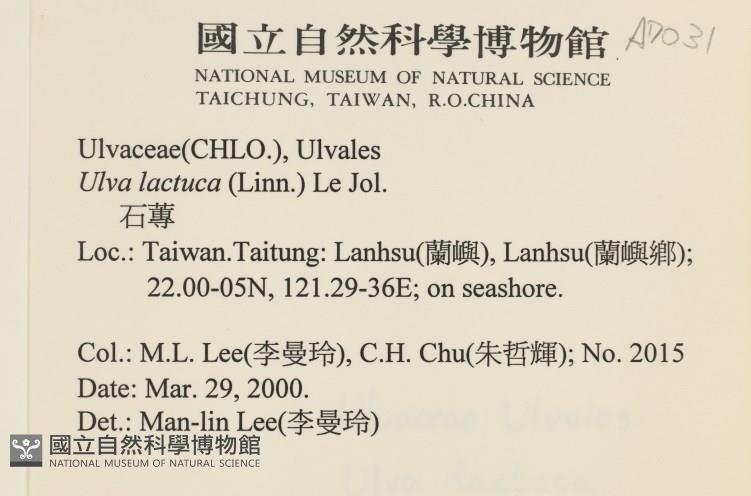 Collector:M. L. Lee, C. H. Chu (李曼玲, 朱哲輝)