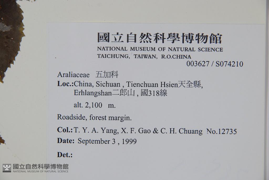 Collector:T. Y. A. Yang, X. F. Gao & C. H. Chuang