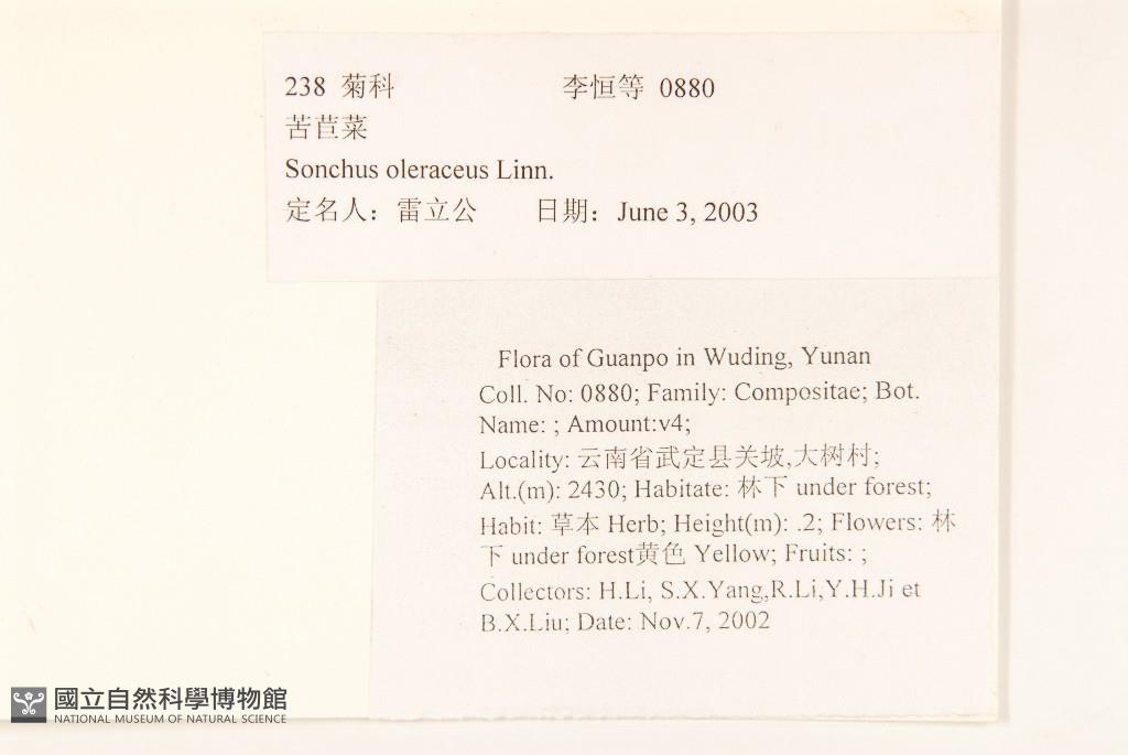 Collector:H. Li, S. X. Yang, R. Li, Y. H. Ji & B. X. Liu