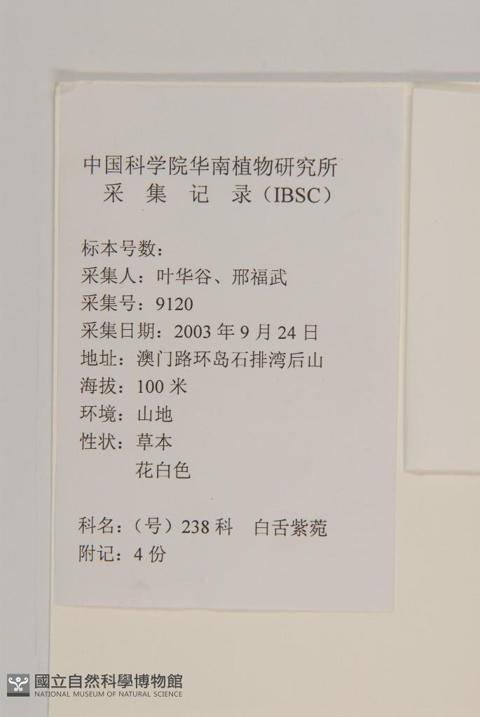 Collector:葉華谷、邢福武