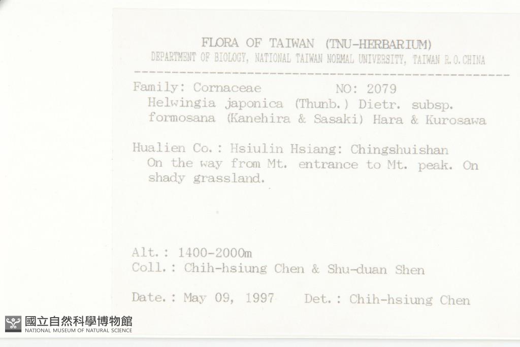 Scientific Name: Helwingia japonica (Thunb.) Dietr. subsp. formosana (Kanehira & Sasaki) Hara & Kurosawa