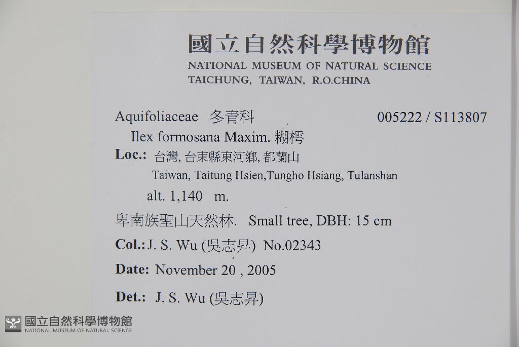 Scientific Name: Ilex formosana Maxim.