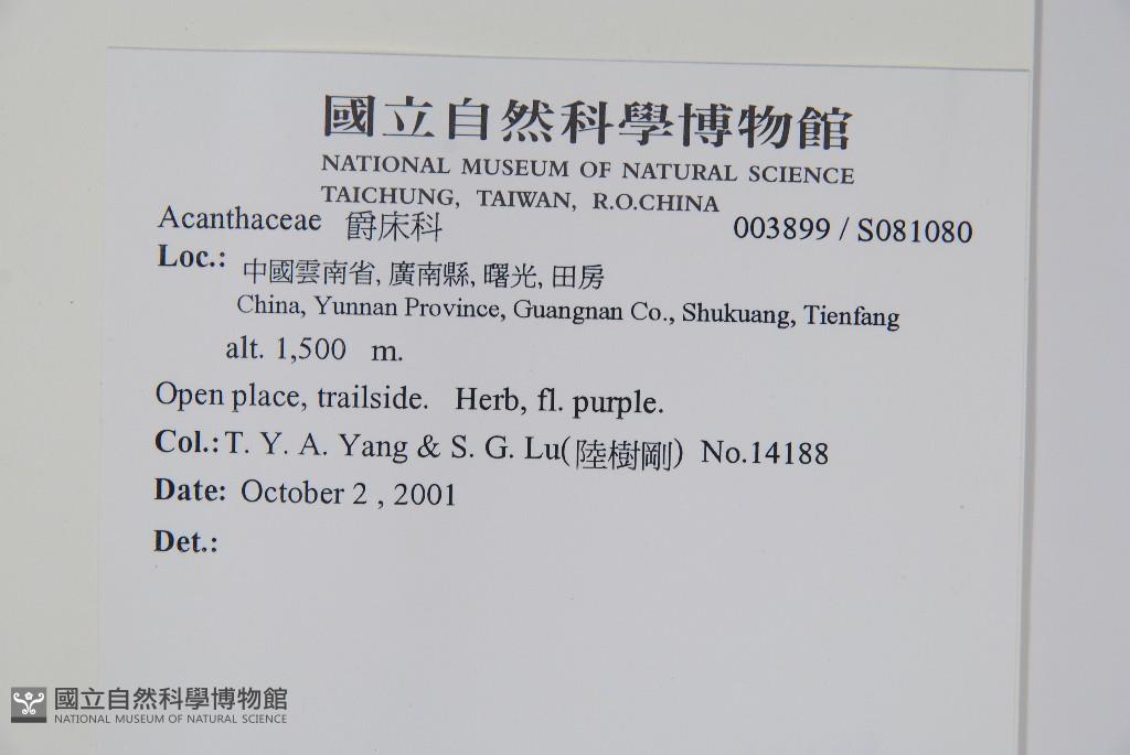 Collector:T. Y. A. Yang & S. G. Lu(陸樹剛)