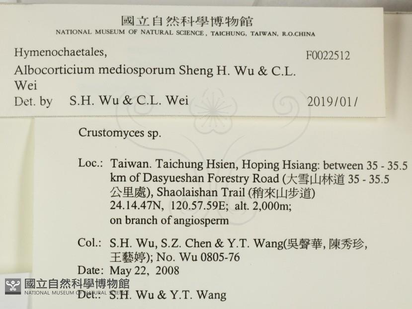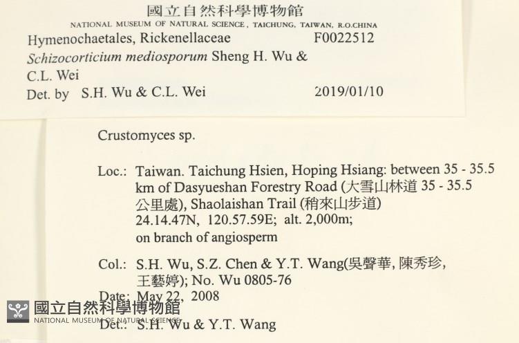 Schizocorticium mediosporum Sheng H. Wu & C.L. Wei