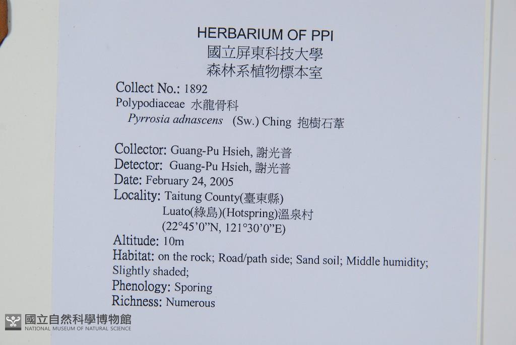 Scientific Name: Pyrrosia adnascens (Sw.) Ching
