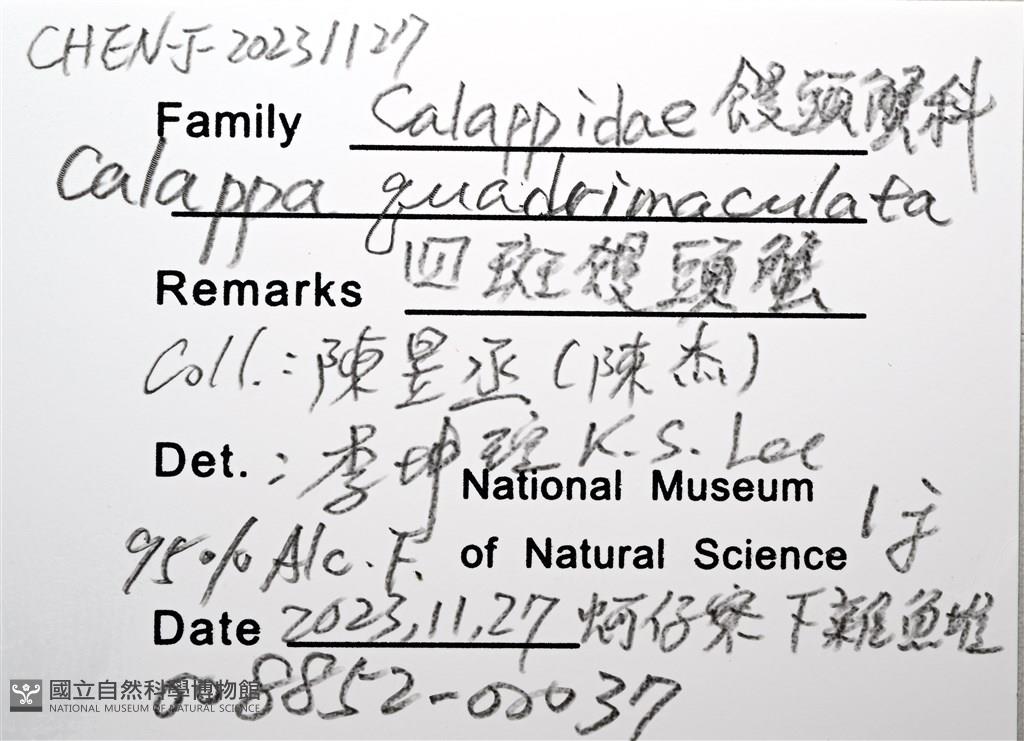 Scientific Name:Calappa quadrimaculata Takeda et Shikatani