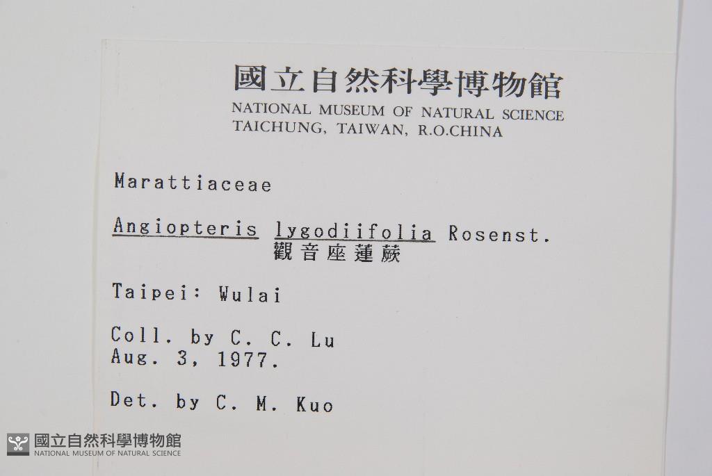 Scientific Name: Angiopteris lygodiifolia Rosenst.