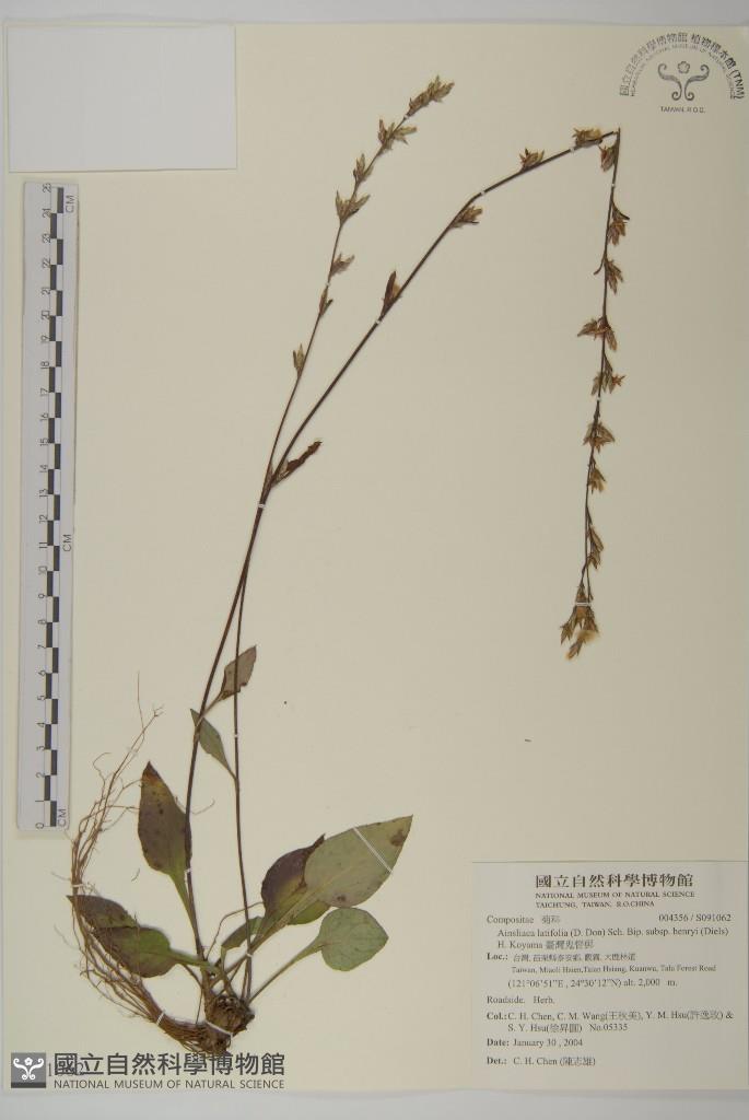 Scientific Name: Ainsliaea latifolia (D. Don) Sch. Bip. subsp. henryi (Diels) H. Koyama
