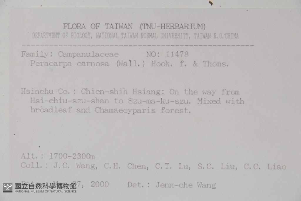 Collector:Jenn-Che Wang (王震哲), Chih-Hsiung Chen (陳志雄), Chang-Tse Lu (呂長澤) & al.