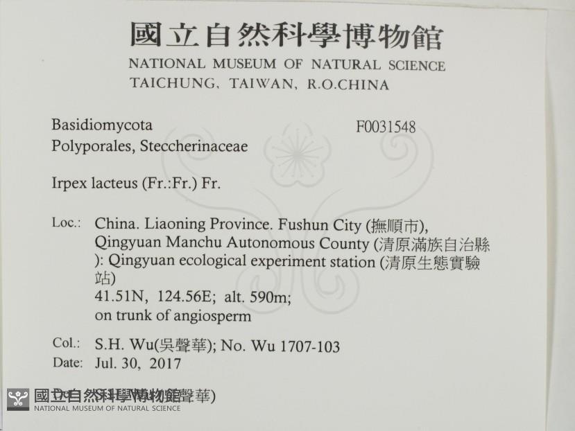 Phylum:Incertae sedis,Agaricomycetes ,Polyporales ,Irpicaceae