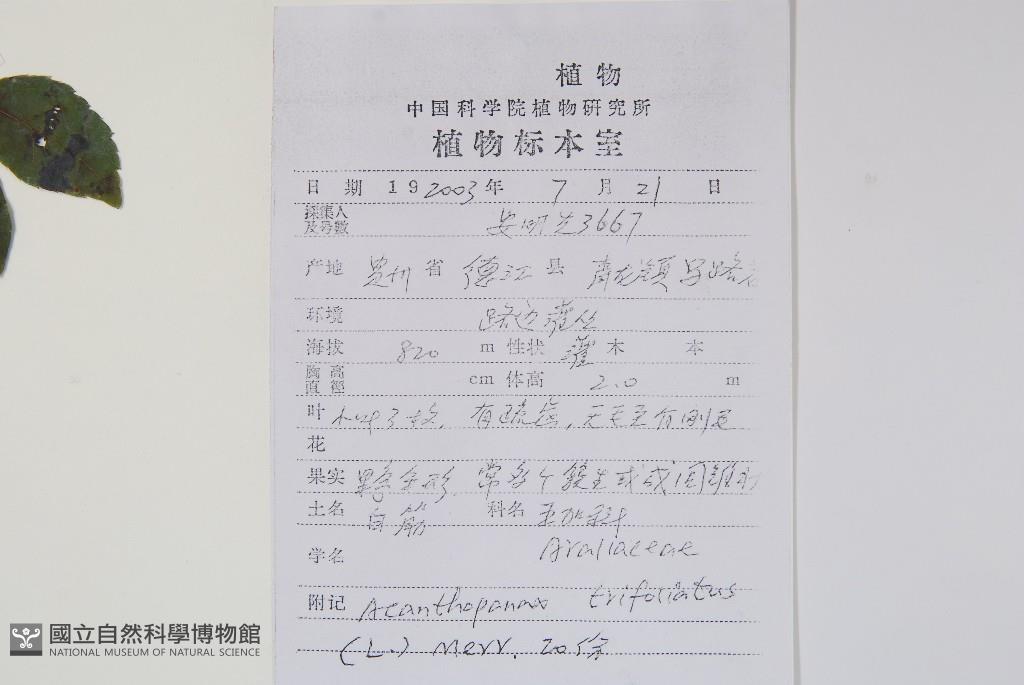 Scientific Name: Acanthopanax trifoliatus (L.) Merr.