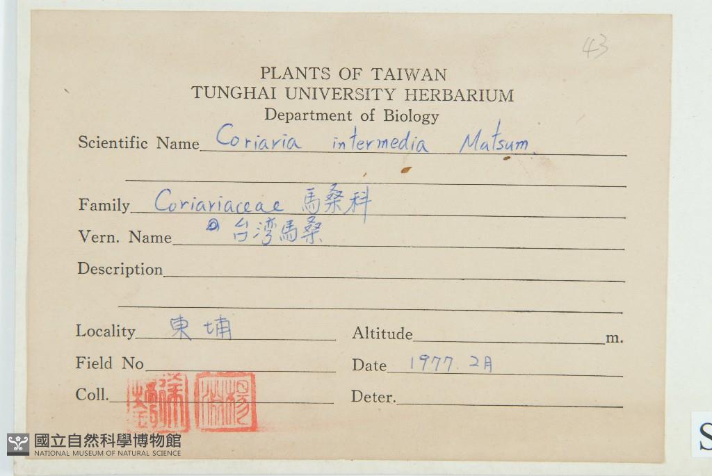Scientific Name: Coriaria intermedia Matsum.