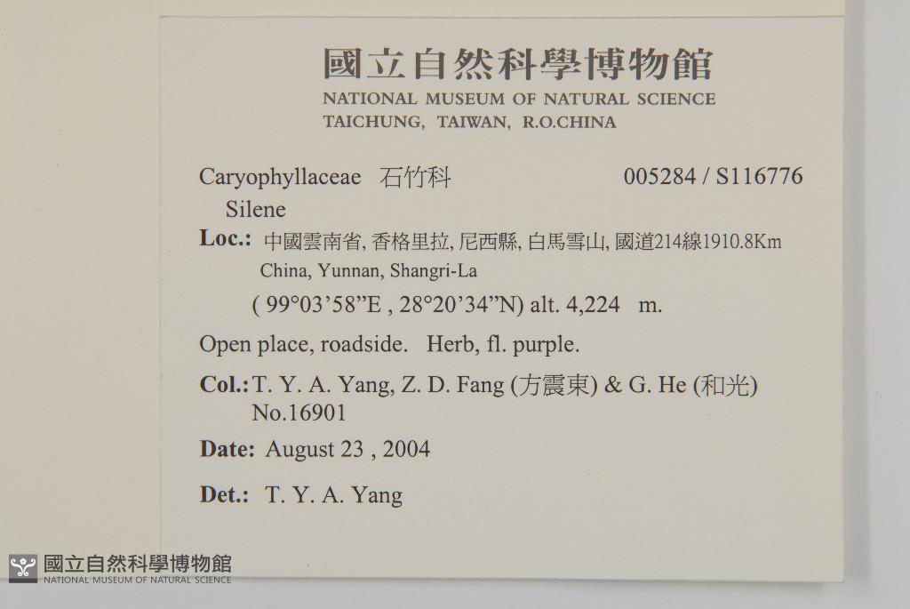 Collector:T. Y. A. Yang, Z. D. Fang (方震東) & G. He (和光)