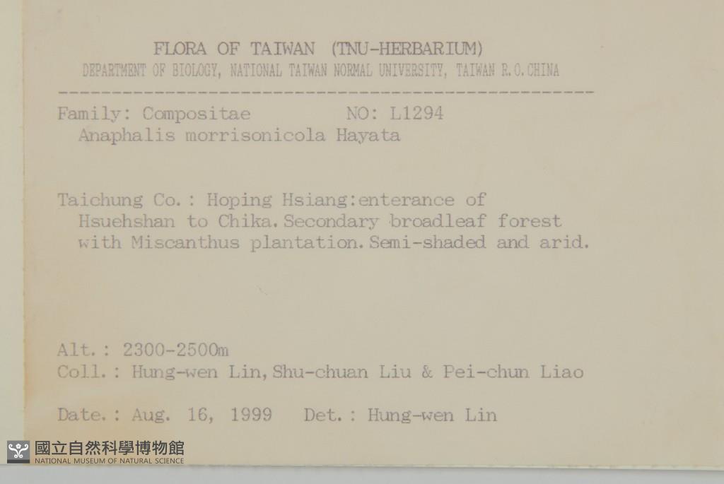Scientific Name: Anaphalis morrisonicola Hayata
