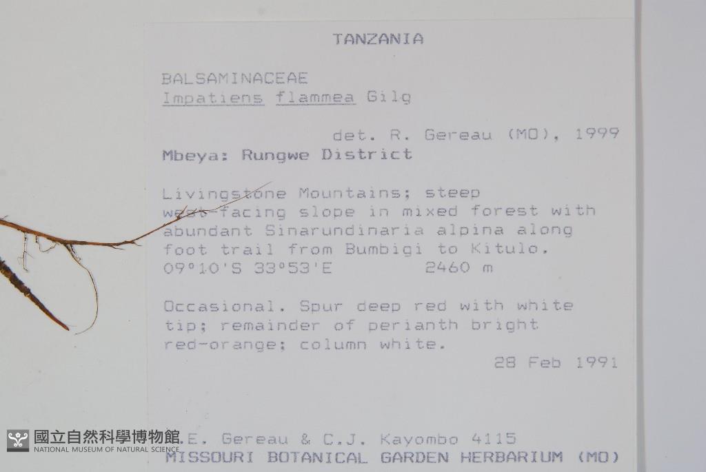 Scientific Name: Impatiens flammea Gilg