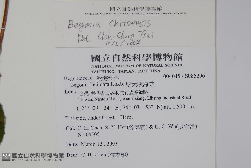 Scientific Name: Begonia chitoensis T.S.Liu & M.J.Lai