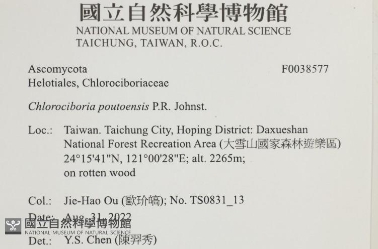 Phylum:Incertae sedis,Leotiomycetes ,Helotiales ,Chlorociboriaceae