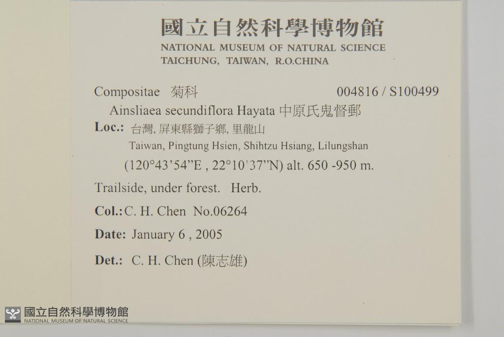 Scientific Name: Ainsliaea secundiflora Hayata