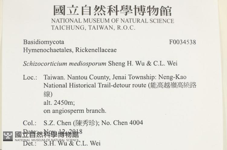 Schizocorticium mediosporum Sheng H. Wu & C.L. Wei