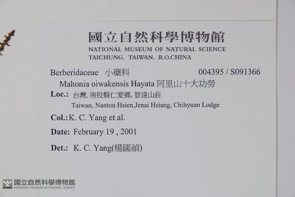 Scientific Name: Mahonia oiwakensis Hayata